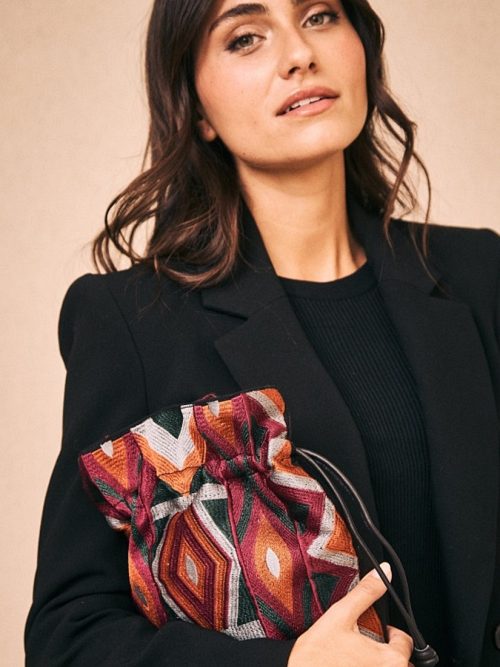 74,00 €Con un mix de vibrante colorido equilibrado con bordados en oro viejo, este rompedor bolso de aire bohemio es el acompañante perfecto para un estilismo minimalista que necesite un toque de intensidad. -