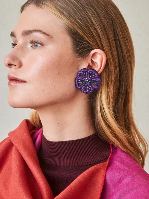 36,00 €Una coqueta y ligera pieza de inspiración boho chic: voluminosos bordados potenciados por sutiles cristales de color hacen de los Pendientes Flor Latido uno de los complementos más favorecedores y exitosos de la colección de la conocida firma española. -