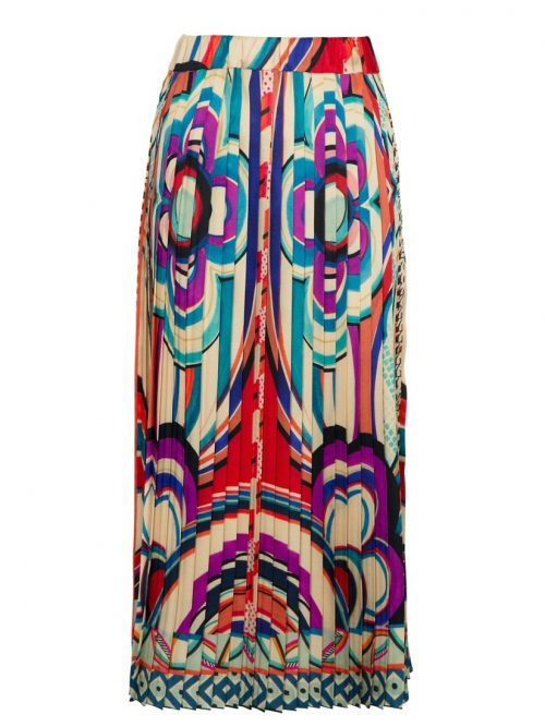380,00 €El precio original era: 380,00 €.266,00 €El precio actual es: 266,00 €.Combinada para un total look de pasarela con su blusa oversize a juego, o con un top sedoso en su gama de colores, la Falda plisada de estampación tribal y corte midi diseñada por Jorge Vázquez es un pleno acierto para una ocasión especial. Una prenda sport-vestir de corte clásico y de plena tendencia con una preciosa y original estampación étnica. -