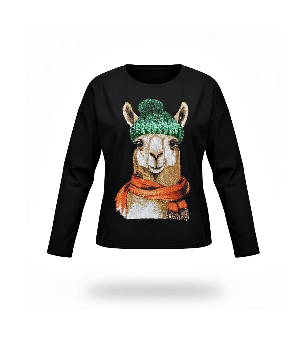 Etiquetas: alpaca, camiseta, camiseta algodón, camiseta estampada, camiseta manga larga, camiseta strass, cool alpaca, moda italiana, tejido natural, tendencias de moda