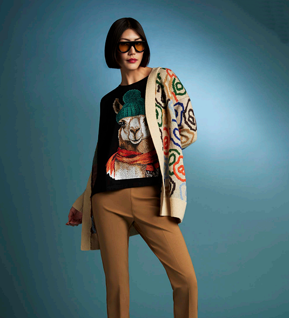 Un nuevo concepto de diseño: con la mejor combinación de ligereza y corte holgado casual, Cool Alpaca es un T-sweater que abarca lo mejor de ambas prendas con un print espectacular.