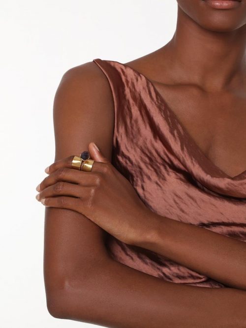 La diseñadora griega Katerina Vassou refleja en esta creación modernista el equilibrio entre el brillo del oro y la naturaleza cruda de la amatista.