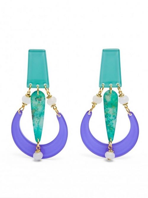 Diseño minimalista, tamaño XL y mix de color impactante: Los Pendientes Geometría Tropical del diseñador Fernando Aldazabal son moda española de vanguardia.