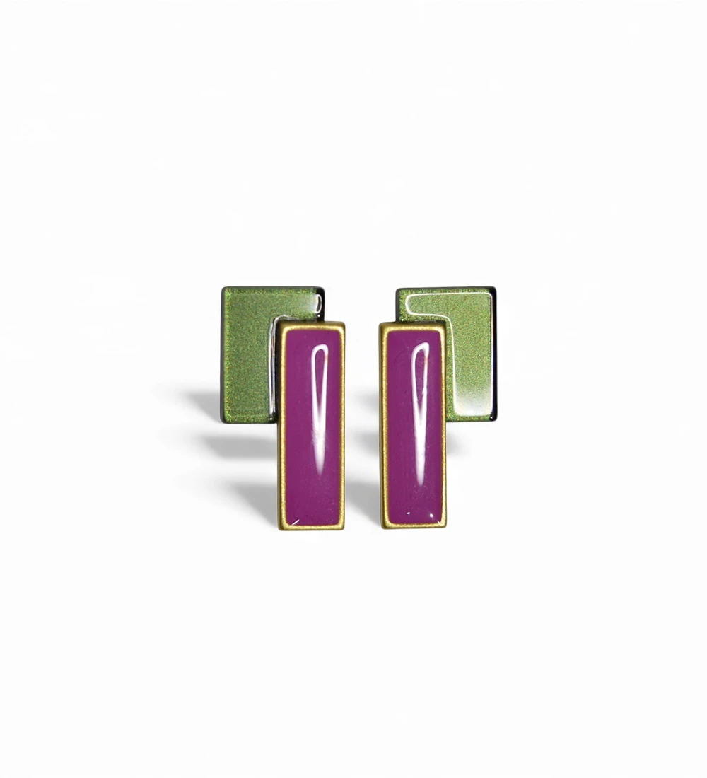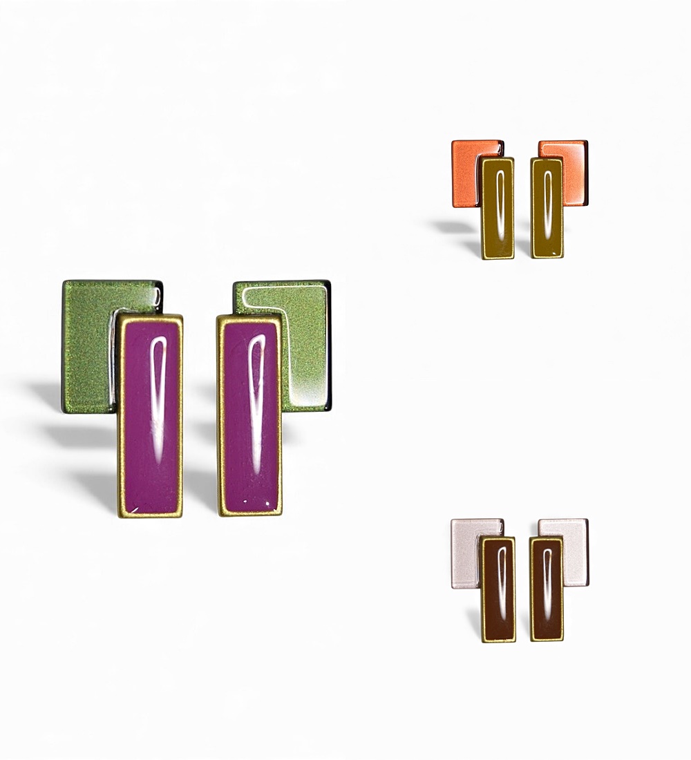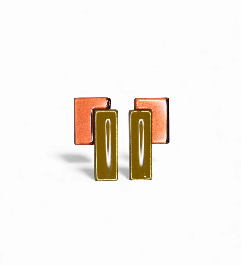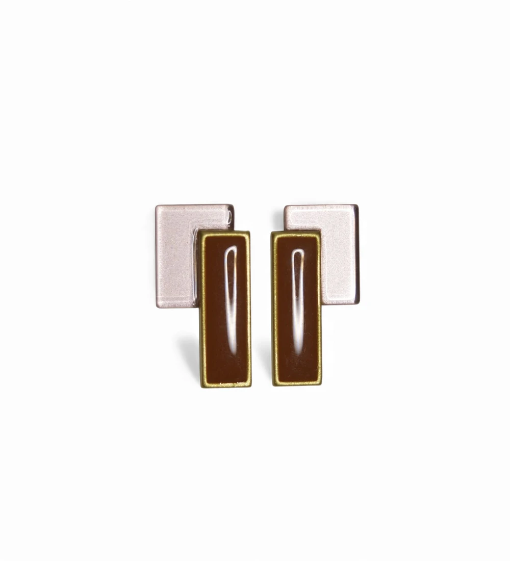 Una cascada geométrica en contraste de color con el toque sofisticado del sutil detalle en oro: inspirados en las formas puras del movimiento Art Decó, Cascade Block es un pendiente tan minimalista como estiloso.